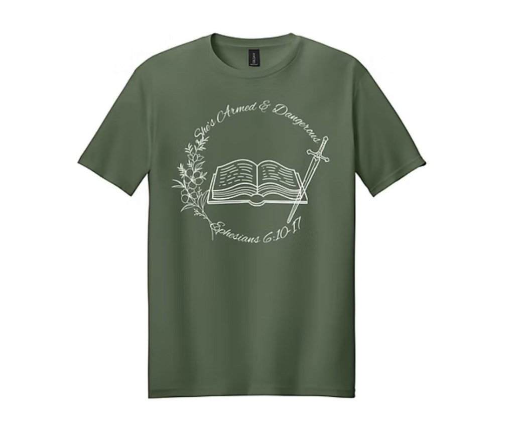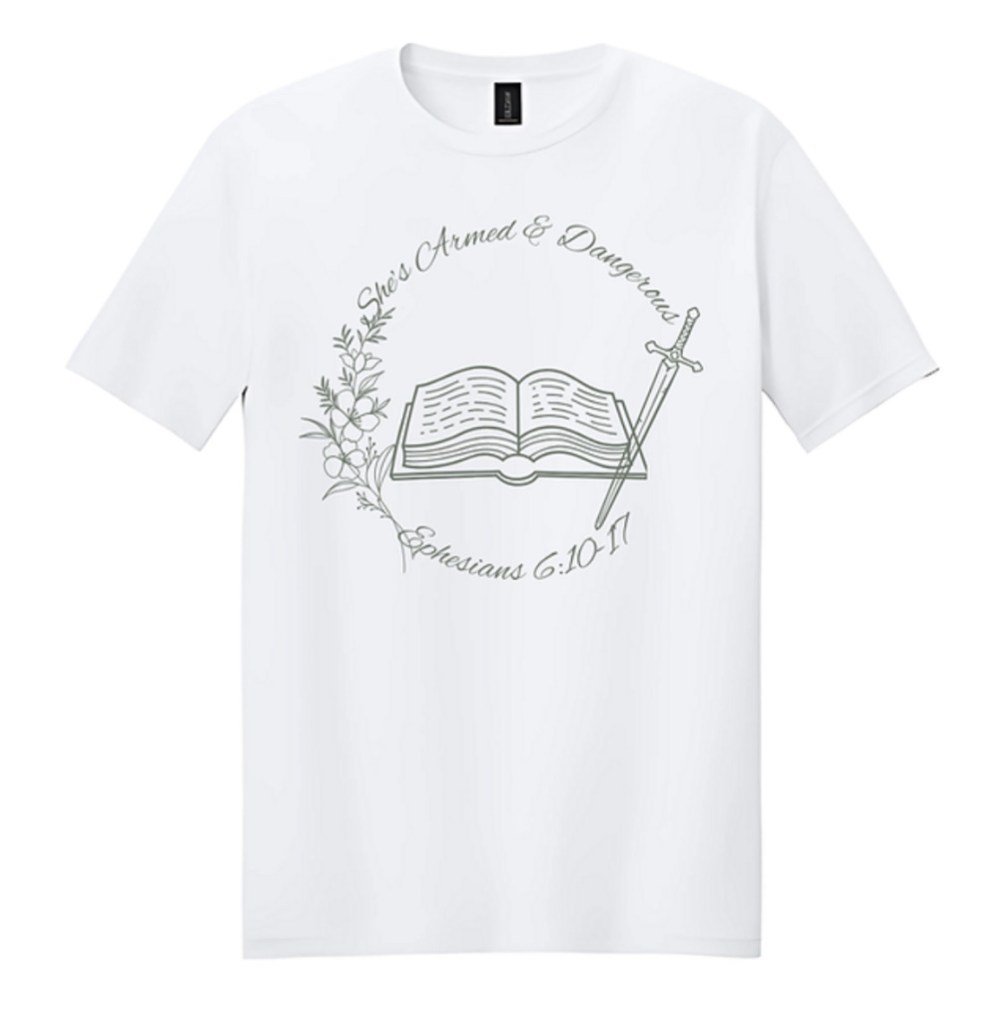 - You can purchase your t-shirt by using the following vendor link: https://www.injesusnamecreations.com/product-page/whitecircleshesarmeddangeroust-shirt