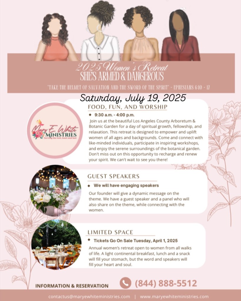 We still have room for you. The retreat will be a in-person with limited virtual participation. Tickets are $45.00 ( includes a light breakfast and lunch) and must be purchased prior to the event. Tickets will not be sold at the door.